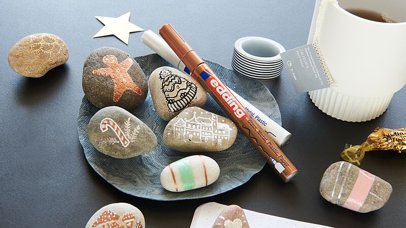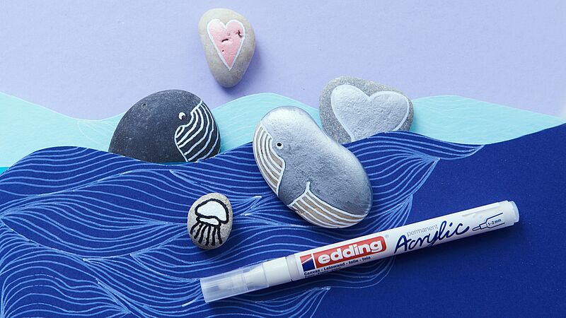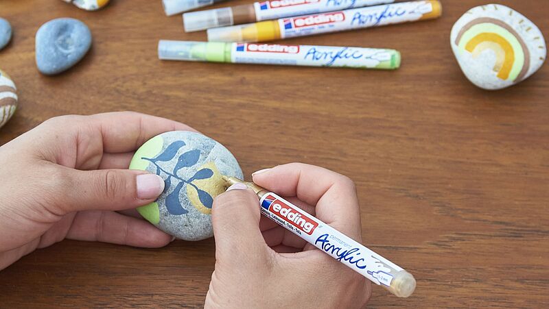 When painting stones, it's generally important that the pen adheres well, regardless of whether the stone has a rough or smooth surface. Since stones are mostly used to beautify the garden, it's especially important that the pens used are weatherproof. Therefore, the paint must be waterproof and able to withstand sunlight. For painting stones, we recommend either our acrylic markers or our paint markers and gloss paint markers from our edding range.