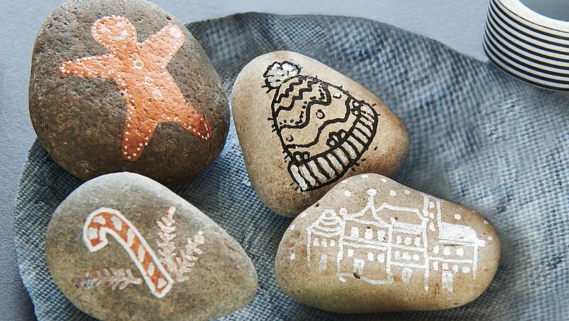 Christmas motifs look just as good on stones as Easter bunnies, flowers, suns, pumpkins, ghosts, or rainbows. Depending on the season, other simple motifs are also suitable.