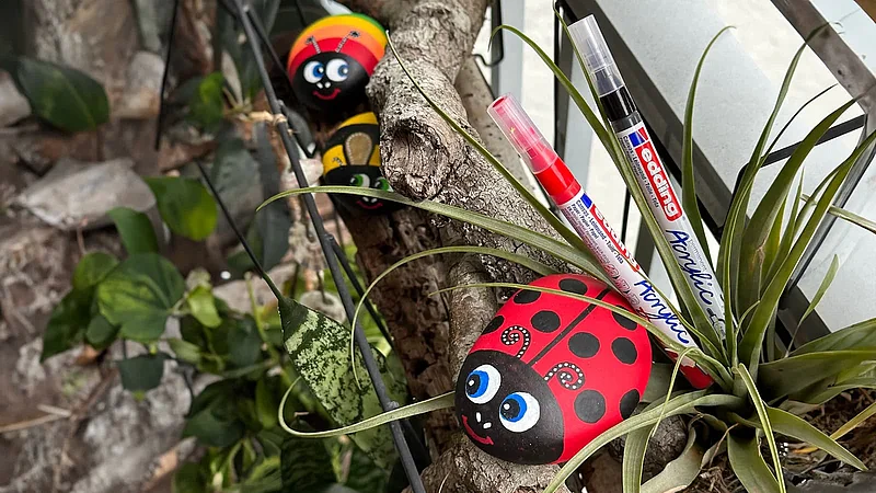 What properties do edding acrylic markers offer for painting stones? Our colorful edding acrylic markers impress with their weatherproof paint, which even withstands rain .